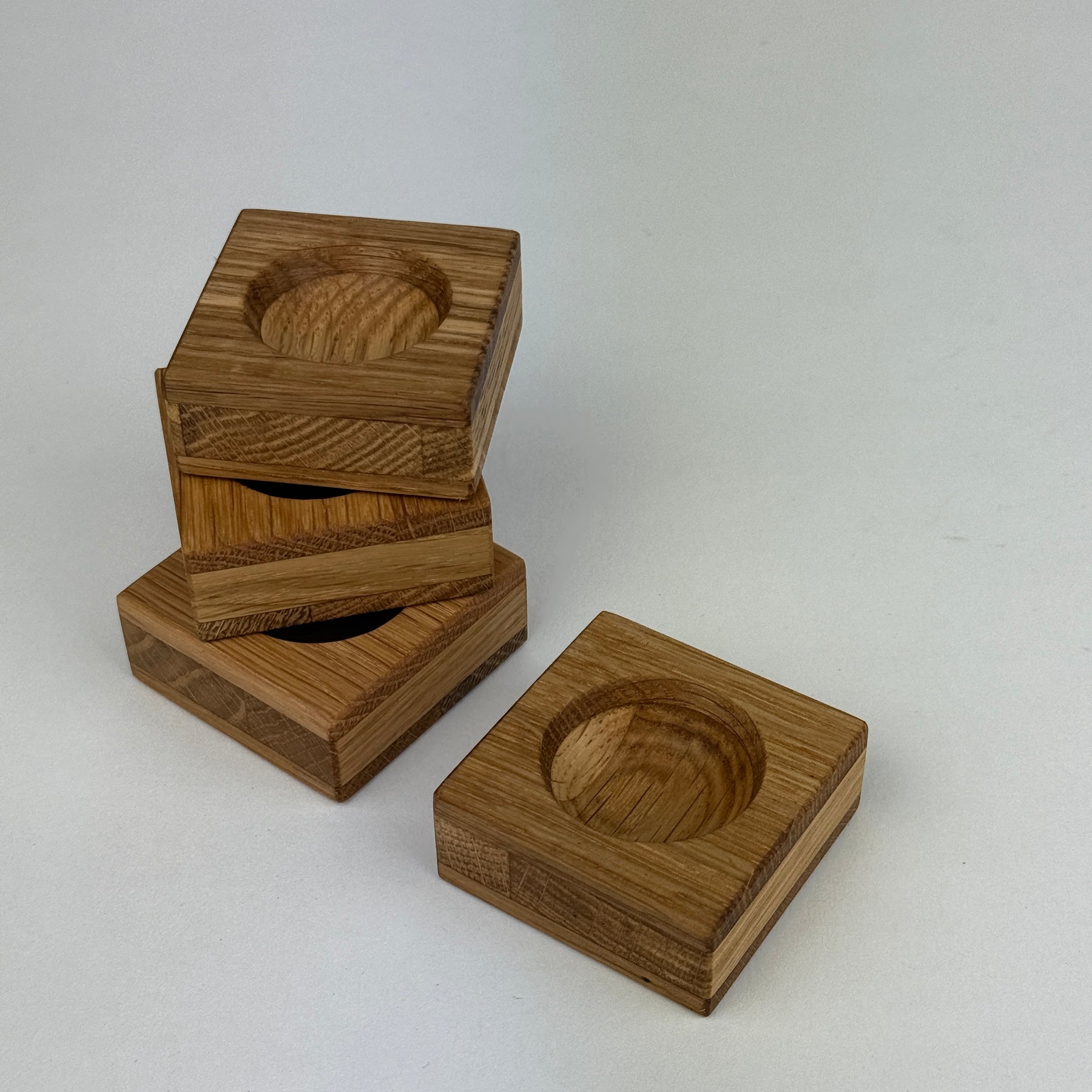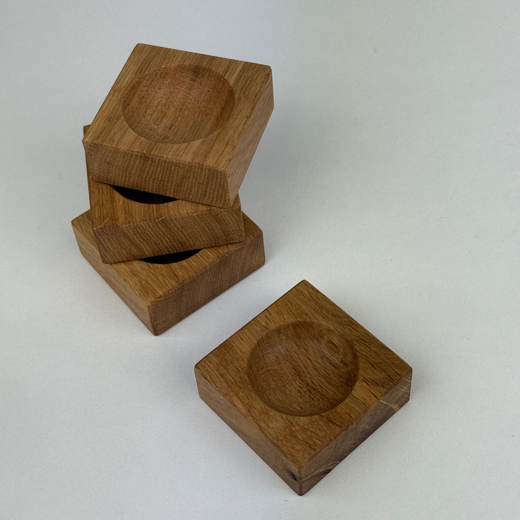 Eierbecher aus Eichenholz, Dreischichtplatte recycelt.