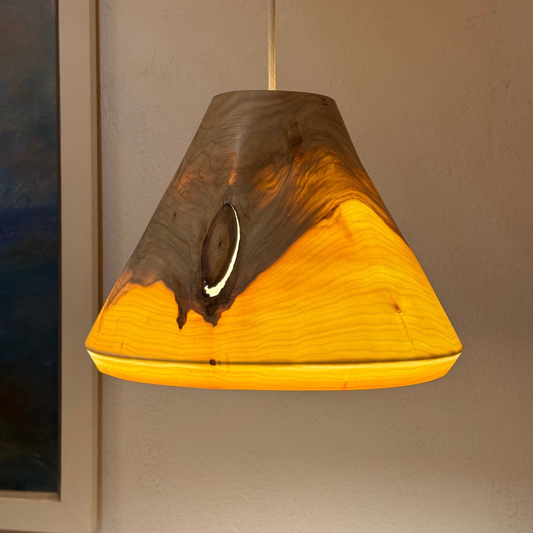 Dieser Lampenschirm hat sich während des natürlichen Trocknungsprozesses bewusst verformt. Spannungen im Holz durften wirken und wurden nicht korrigiert – so entsteht eine organische Form, die den Charakter des Materials sichtbar macht. Inspiriert von der freien Holzkunst verstehen wir diese Veränderung nicht als Makel, sondern als Qualitätsmerkmal: Jeder Schirm ist ein echtes Unikat, geprägt vom Holz selbst und seinem Weg. Das Licht folgt der Form – lebendig, warm und ehrlich.