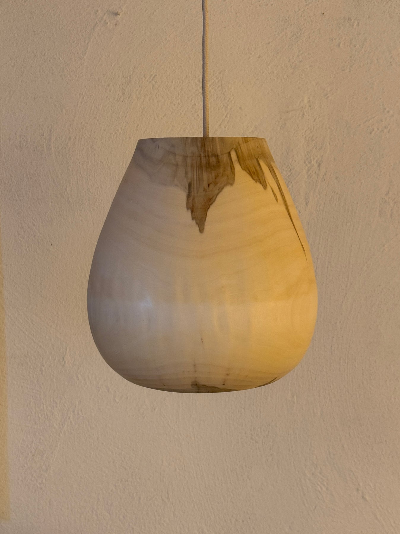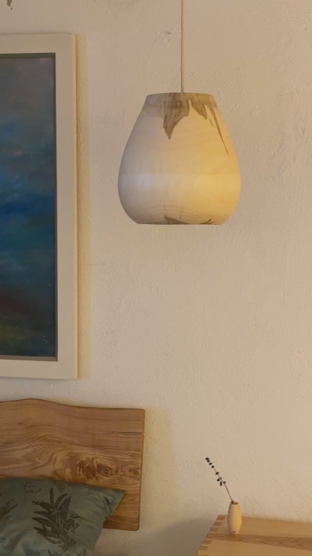 Das Holz dieser Lampe ist wunderschön durchscheinend und hauchdünn gedrechselt. Wie alle unsere Lampen gibt sie ein sehr warmes, angenehmes Licht in den Raum ab. Sie passt gut über einen Ess- oder Wohnzimmertisch oder aber auch in eine kleine Sofaecke. Mit ihrer geschlossenen Form kann sie gut hoch aufgehängt werden, ohne dass das Leuchtmittel blendet.
