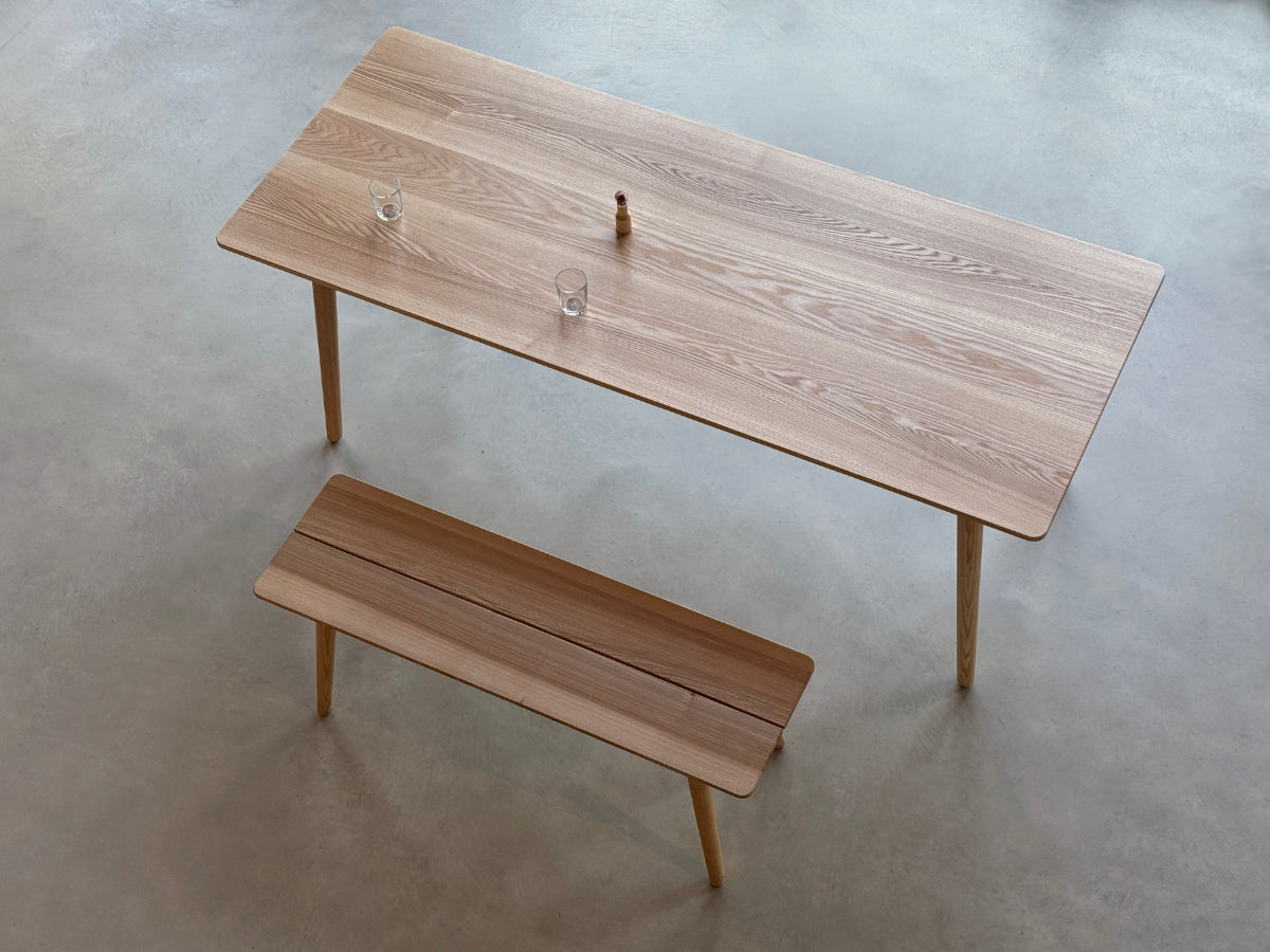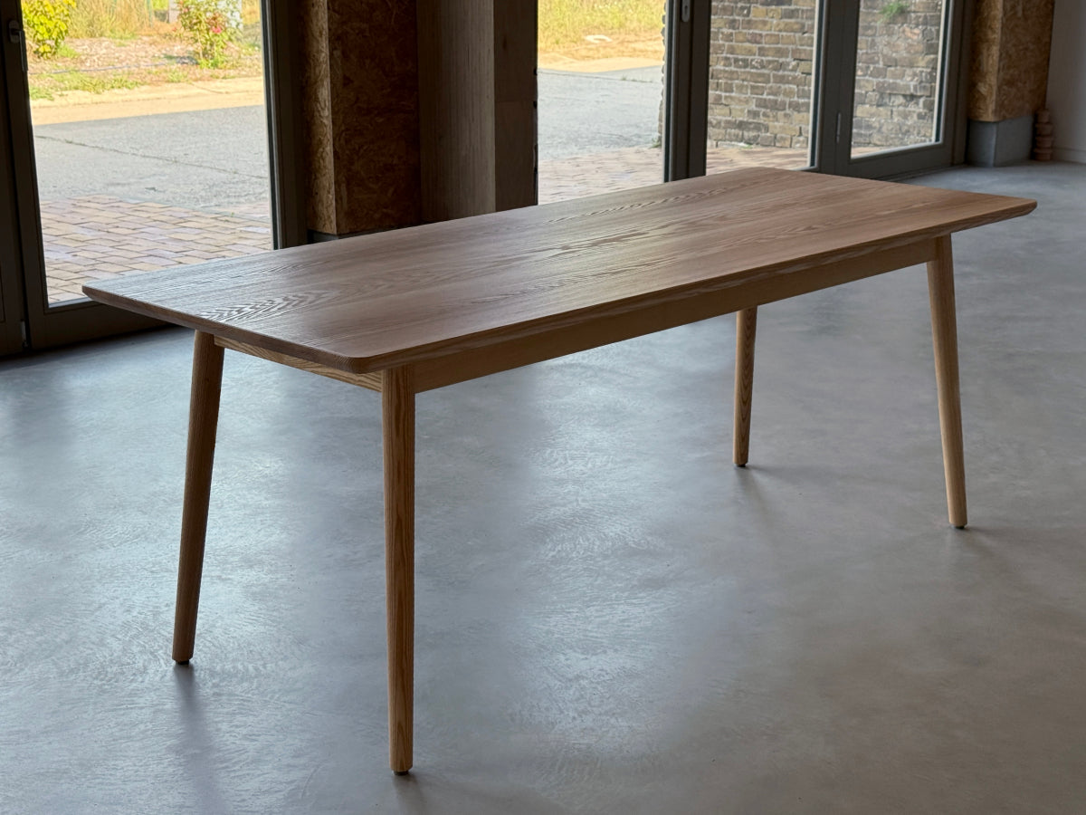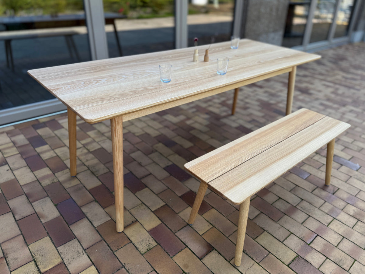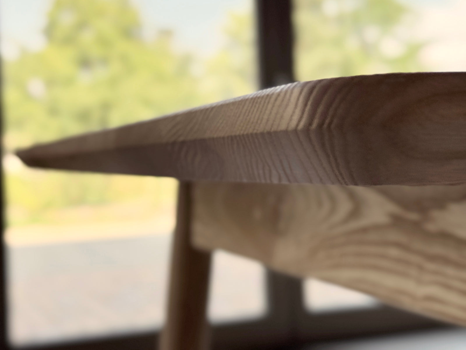 Massivholztisch aus regionalem Eschenholz. Die gebürstete und geölte Oberfläche bringt die natürliche Maserung des Holzes zur Geltung und bietet eine angenehme Haptik.