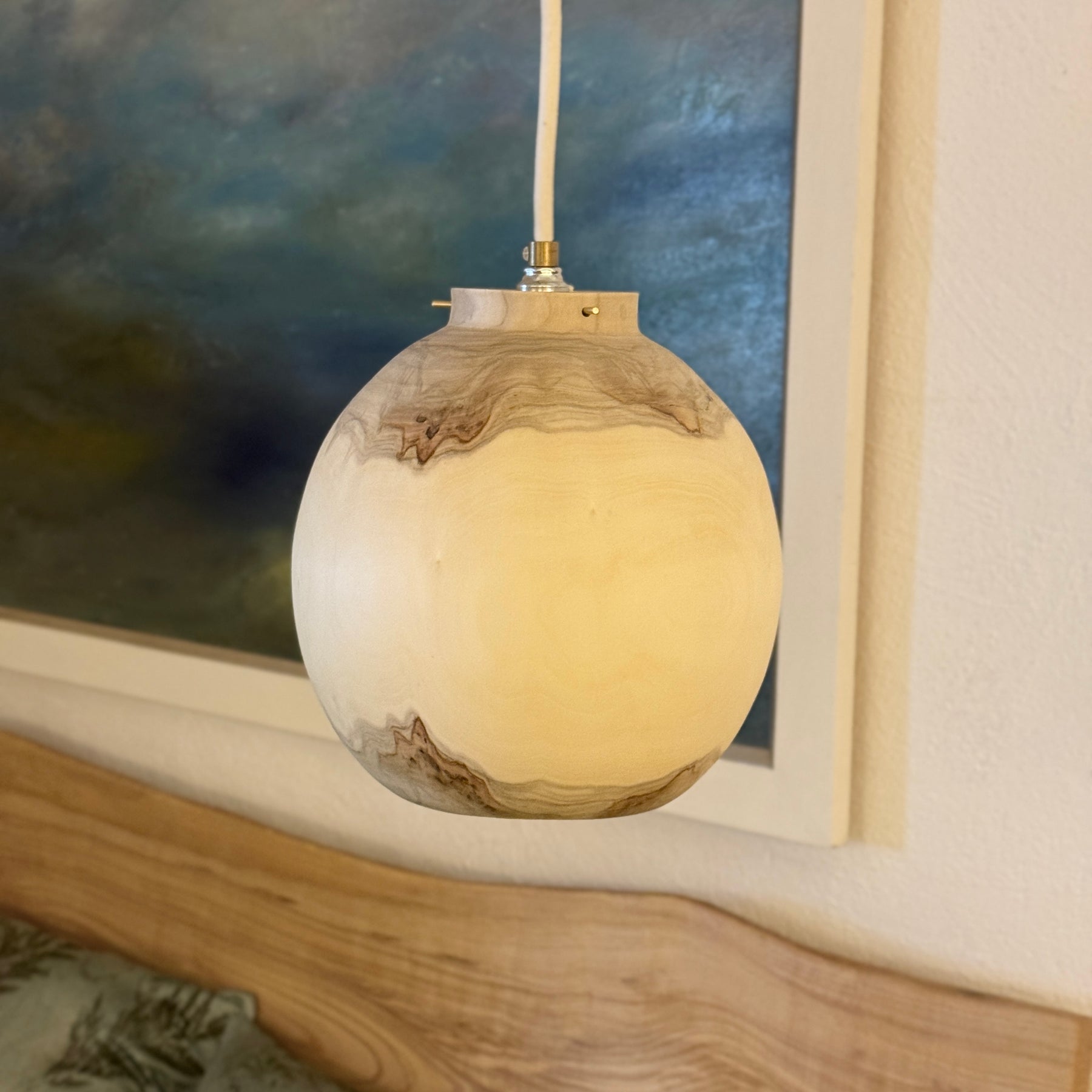 Hand-Turned Lampshade Made from Regional Poplar Wood: