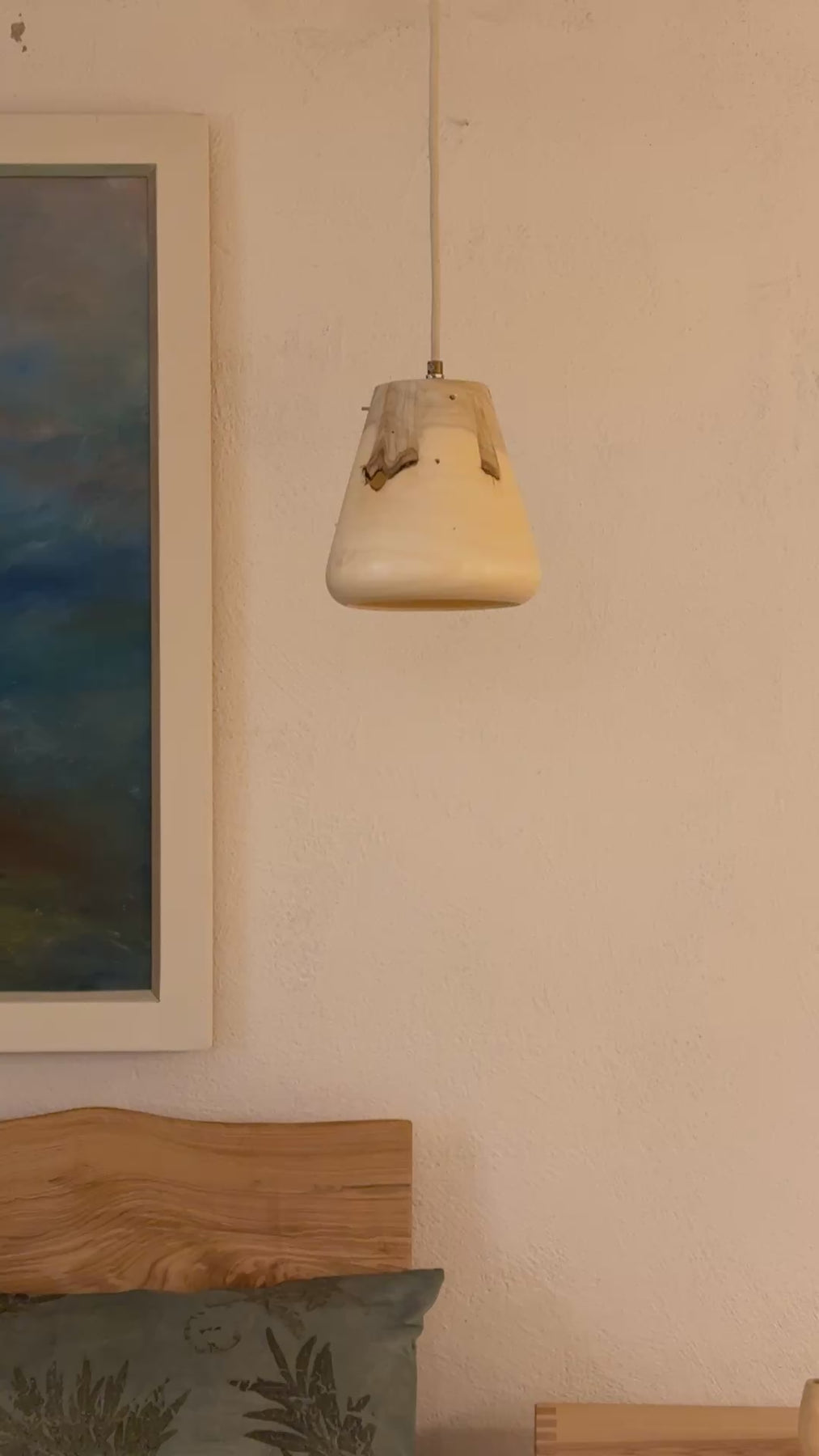 Das Holz dieser Lampe ist wunderschön durchscheinend, hauchdünn gedrechselt. Sie gibt, wie alle unsere Lampen, ein sehr warmes, angenehmes Licht in den Raum ab. Sie passt gut über einen kleinen Ess- oder Wohnzimmertisch, oder in eine Sofaecke. Mit ähnlichen Modellen kombiniert, kann diese Lampe auch lange Tische beleuchten.