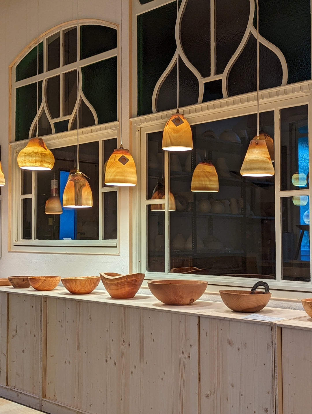 A place that not only showcases art but also offers insight into our craftsmanship and processes. Here, we offer turned bowls, boxes, small accessories, kitchen utensils, and unique keepsakes. Through our large windows, visitors can catch a glimpse of our work in the workshops. Our new space brings together all aspects of our craft under one roof—from the carpentry shop and sawmill to the CNC machine and lamp workshop. We place great emphasis on sustainability and transparency, so each step in the creation of our products is visible.